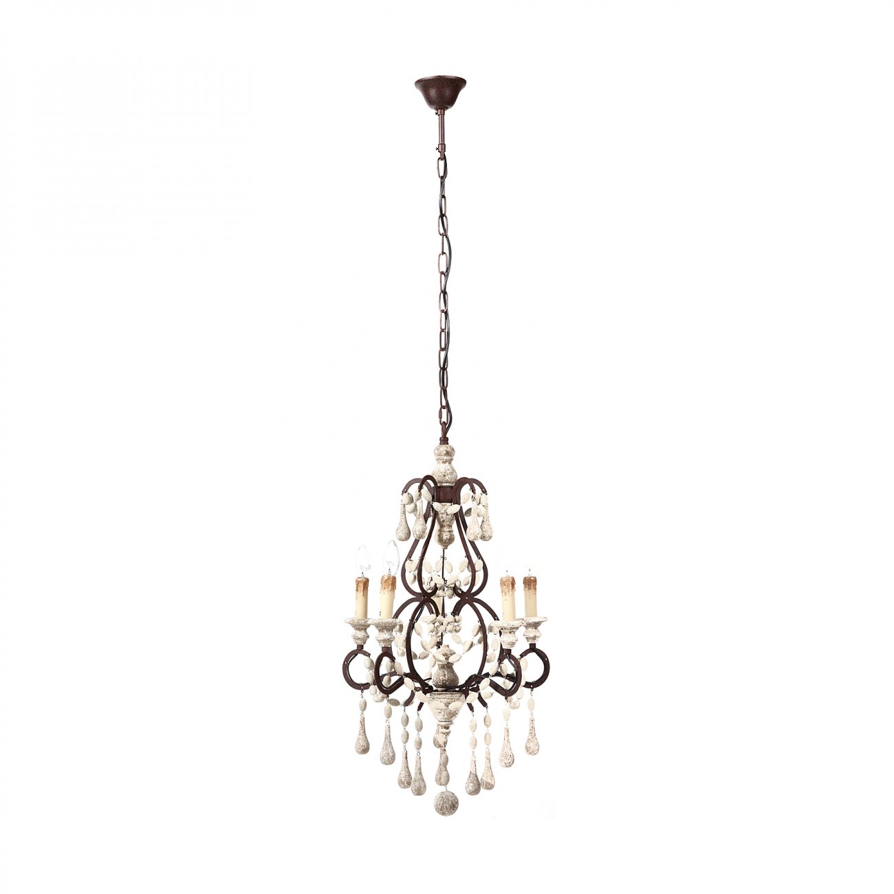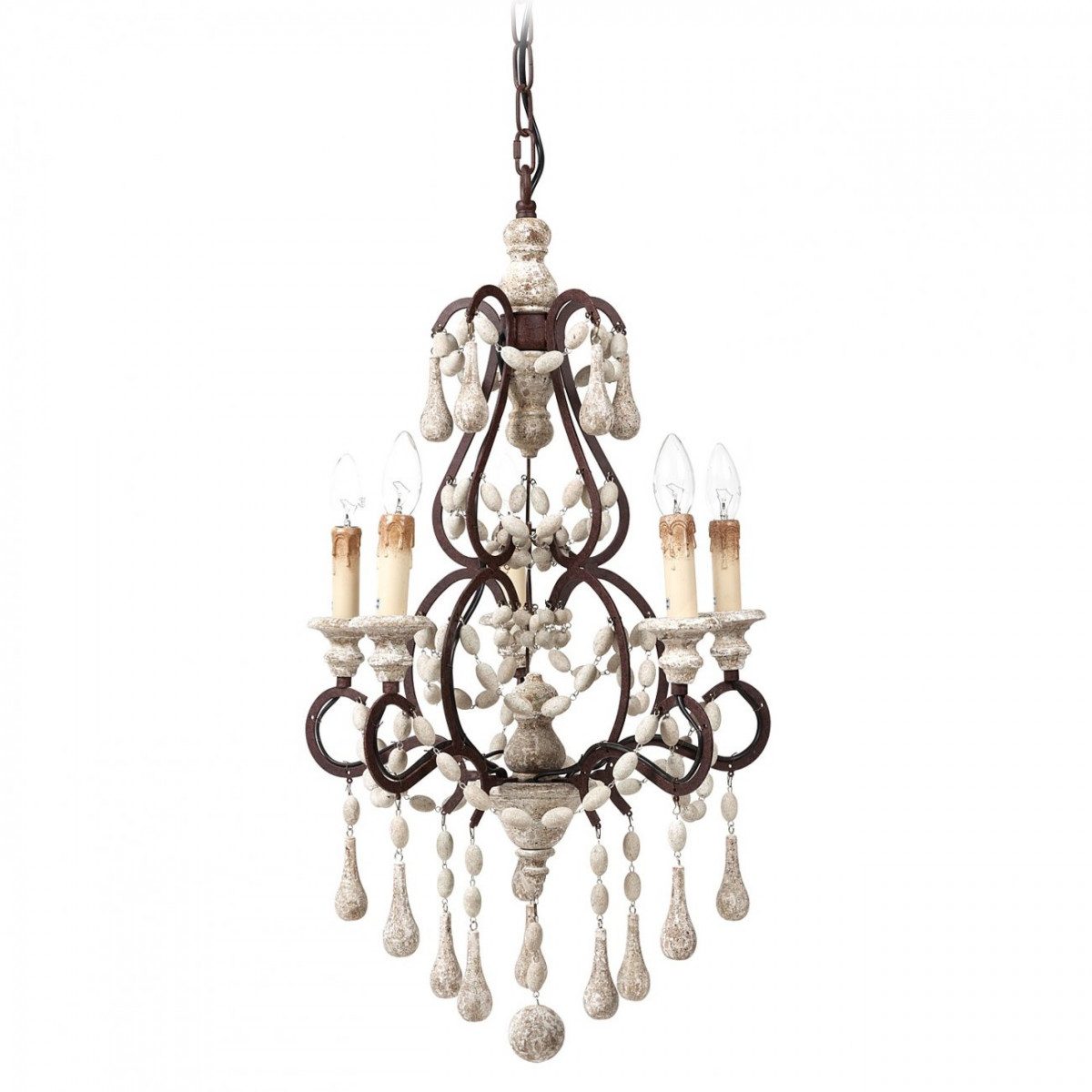 Люстра Claris. Люстра Claris из дерева и металла выполнена «под старину» и вызывает ассоциации с романтикой прошлых веков, балами при знатных дворах и турнирами доблестных рыцарей. Оригинальный светильник, представитель прекрасного, неувядающего модерна. Модель оценят романтики и мечтатели, которые не прочь бы воскресить традиции придворных балов и торжественных, царских церемоний. В конструкции люстры Claris используются лампы типа Е14. У них невысокая мощность. Но, так как их в люстре много, освещение не утрачивает полноценности. Материал изготовления — дерево с эффектом инея и металл смотрятся в модели очень элегантно и романтично. Такой светильник привносит в атмосферу помещения предвкушение значащих событий, чувство особенности обстановки, ощущение присутствия мистерии. Красивая люстра Claris отлично гармонирует с классическим, современным и модерновым стилем. Но у нее условие — ей нужен простор, а значит высокие потолки. Именно в таком помещении люстра раскроет все свои достоинства.